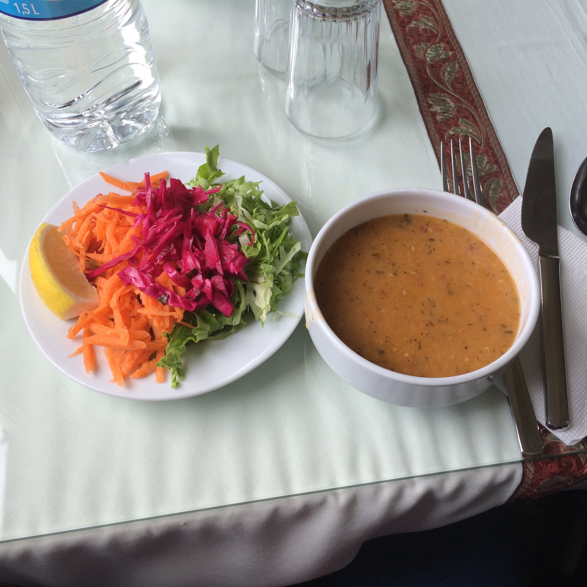 - Appetizers: Lentil soup and Salad