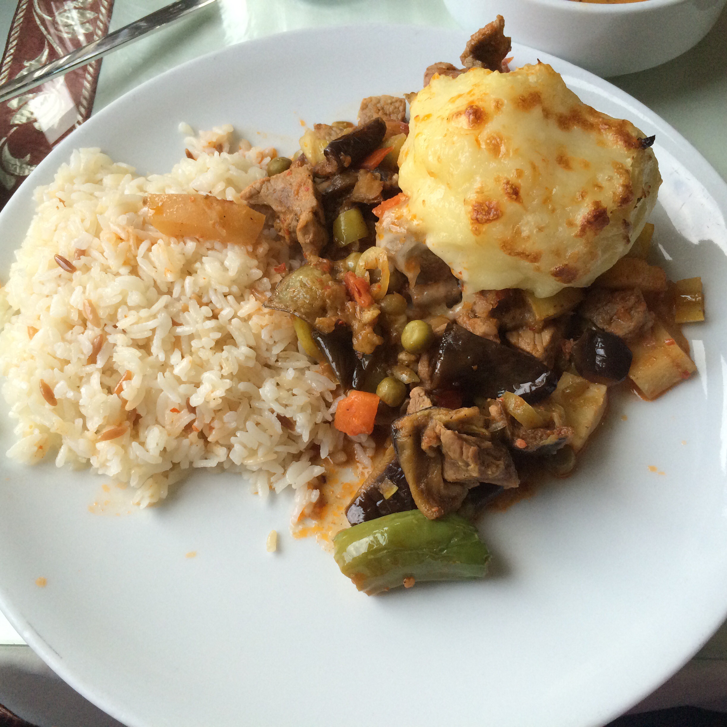 - Main dish: Pick one entree and one side (I don’t really remember what I had, but it was a buttery rice ,and a beef dish with potato and cheese?)
