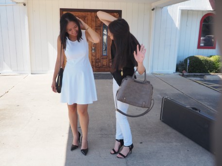 ing 2 hours later (without taking into account the 50 minutes required to drive home and get to the shower on time). I was euphoric when I tried on this dress. It was a true white, modestly form-fitting, and just the right length. YES! I’ve had it for a year and it’s still white to this day. White dresses can be dressed up with pumps, or dressed down with flats or sandals. It’s the perfect thing to grab when you’re lacking the usual tim needed to get ready. Since I felt more lady-like than usual, I paired it with a some black d’orsay pumps from Zara, and a black purse from H&M. Easy-peasy!